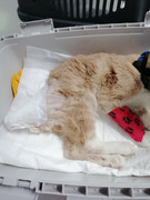 15 августа мне позвонила моя знакомая из соседнего дома Наташа, которая раньше волонтерила со мной и разгребала стихийники, сейчас она отошла от дел и занимается только своими многочисленными котофеями, которых набрала и не смогла пристроить. Наташа подобрала на Пономаренко изувеченного кота, лечение которого требовало явно больших средств. Она отвезла его на Каховскую, но там операцию провести не смогли, порекомендовали обратиться в Эгиду. Наташа позвонила мне, я Марине, короче решили коту помочь. Обратились в клинику Чегодаева. После первого осмотра оказалось, что части хвоста нет и требуется ампутация еще нескольких позвонков. Кожи на хвосте и крестце нет, по всей поверхности опарыши, кот худой и очень слабый. После чистки открылись карманы между мясом и кожей, причем их глубина соответствует длине медицинского пинцета. Требуются ежедневные обработки, в раны надо закладывать мазь, потом, когда карманы заживут, понадобится пересадка кожи, потому что у котов кожа не восстанавливается, она закручивается и гниет или усыхает. Короче в лучшем случае на заживление и восстановление - 1 месяц. По деньгам: первая чистка больше 300 рублей, потом каждая обработка по 60-80 рублей, пересадка 600-800 рублей. Марина сделала пост на сбор денег, люди начали помогать. Потом о чудо! Написала девушка, которая узнала своего потерянного кота. Ее кот Персик потерялся с 31 июля на 1 августа, когда у нее была ночная смена, кот оставался с двоюродной сестрой. Как кот пропал сестра не знает или, скорее всего соврала, у нее были гости. Девушка с'ездила в клинику, узнала своего Персика и он тоже ее узнал. Она сразу решила заниматься котом сама и сама все оплачивать. Единственное - попросила помочь Наташу брать к себе кота, когда она будет на дежурстве. Вот такая история. Деньги, потраченные Эгидой, компенсировали подписчики инстаграма, за что огромное им спасибо! Остальные собранные деньги пойдут на восстановление выпавшего из окна мейнкуна, от которого отказались хозы.